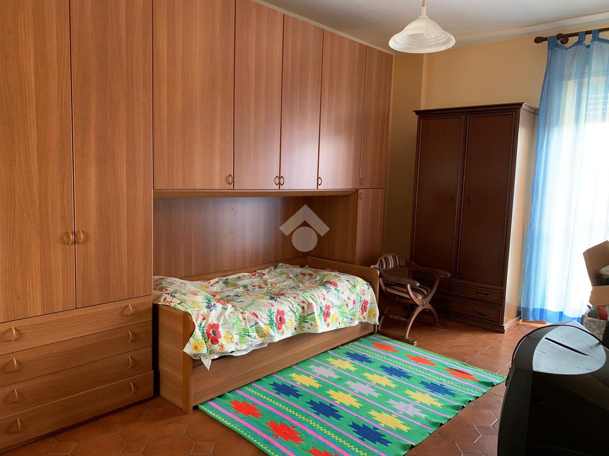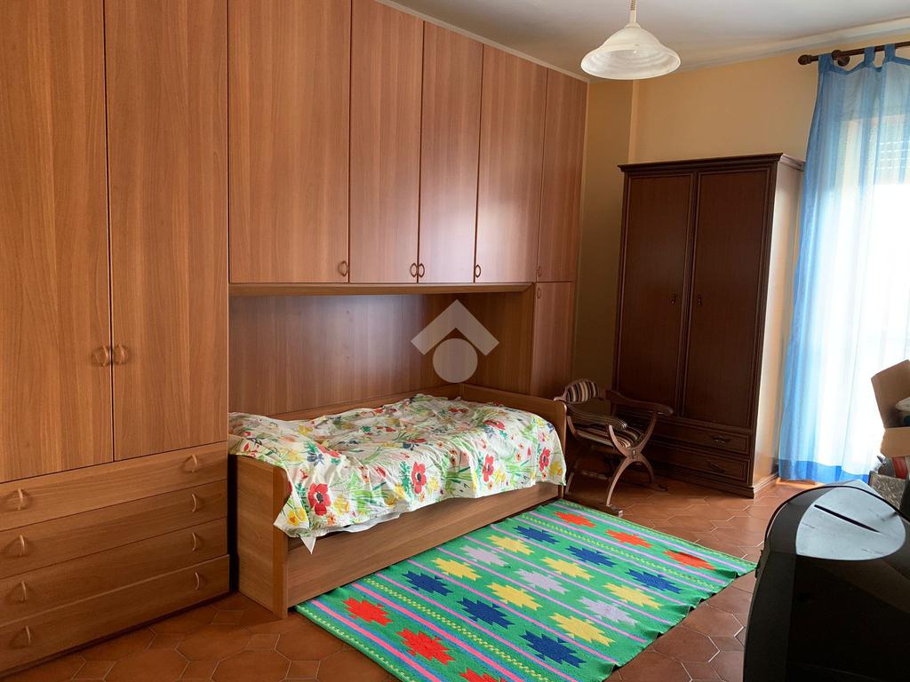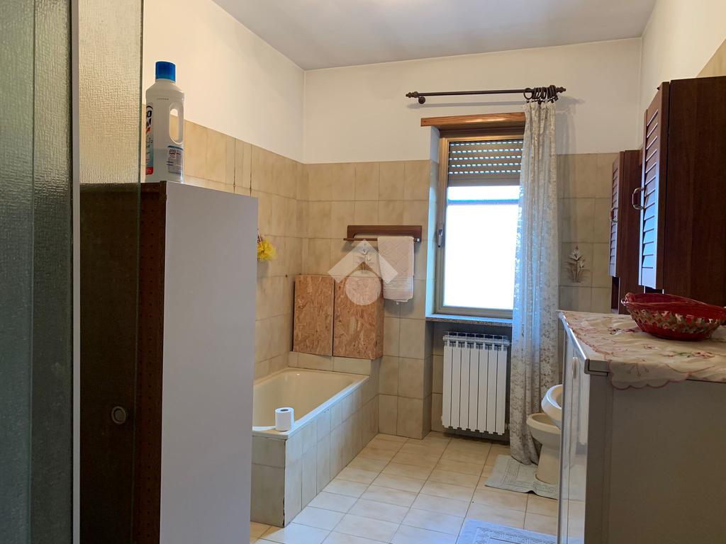 Al primo piano, il secondo alloggio: l’ingresso è direttamente sulla sala da pranzo separata dalla cucina abitabile e dal salotto. Le camere da letto matrimoniali sono due e il bagno è finestrato con vasca.