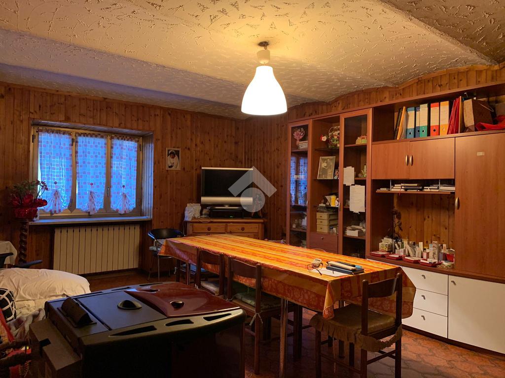 Al piano terra, il primo appartamento: il corridoio conduce a tutte le stanze della casa, la zona giorno con la sala da pranzo e la cucina e la zona notte con le due camere da letto e il bagno finestrato con vasca. L'alloggio è dotato di stufa a pellet.