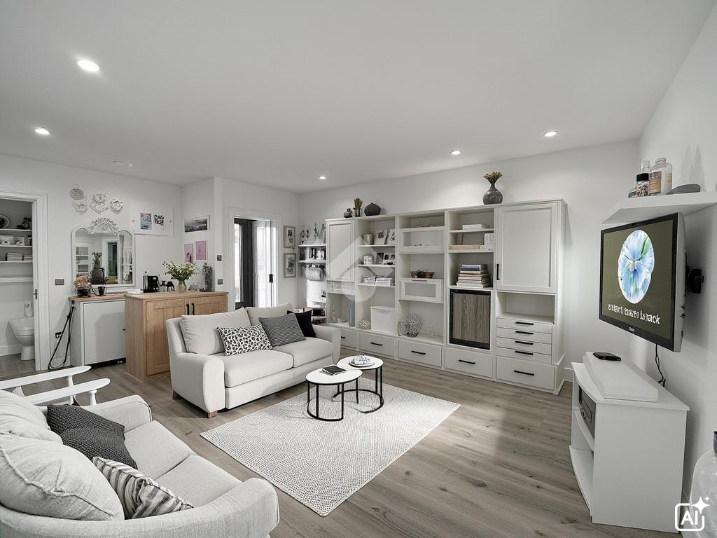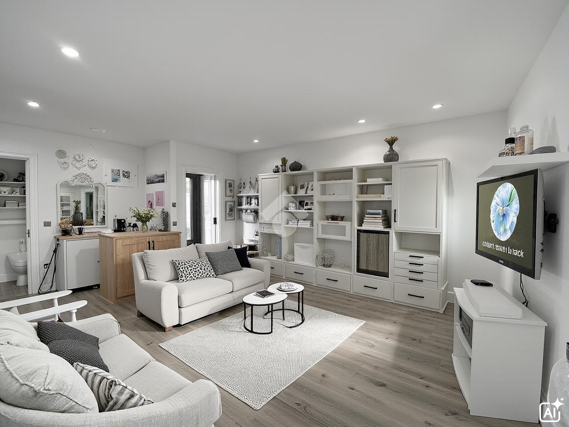 L’ingresso è direttamente sulla zona giorno composta dal luminoso salone, con ripostiglio, e dalla cucina abitabile, entrambi con sfogo sul terrazzo.