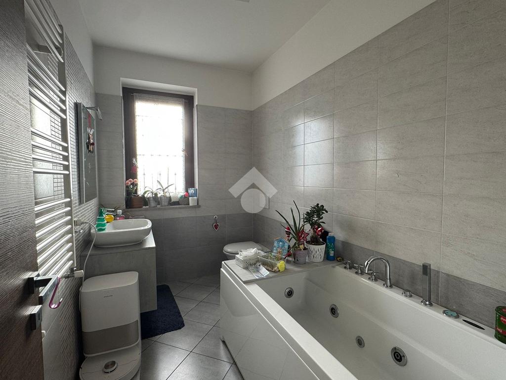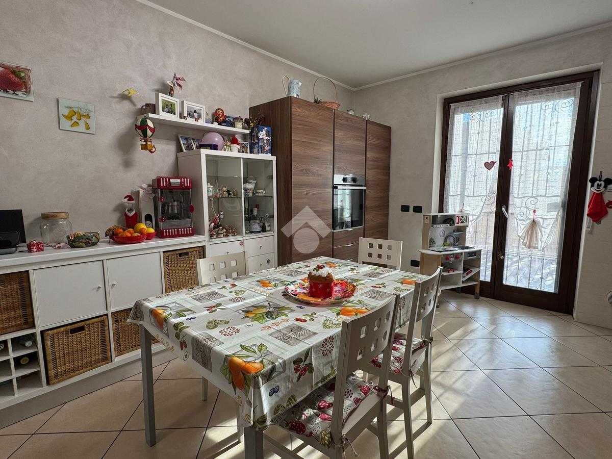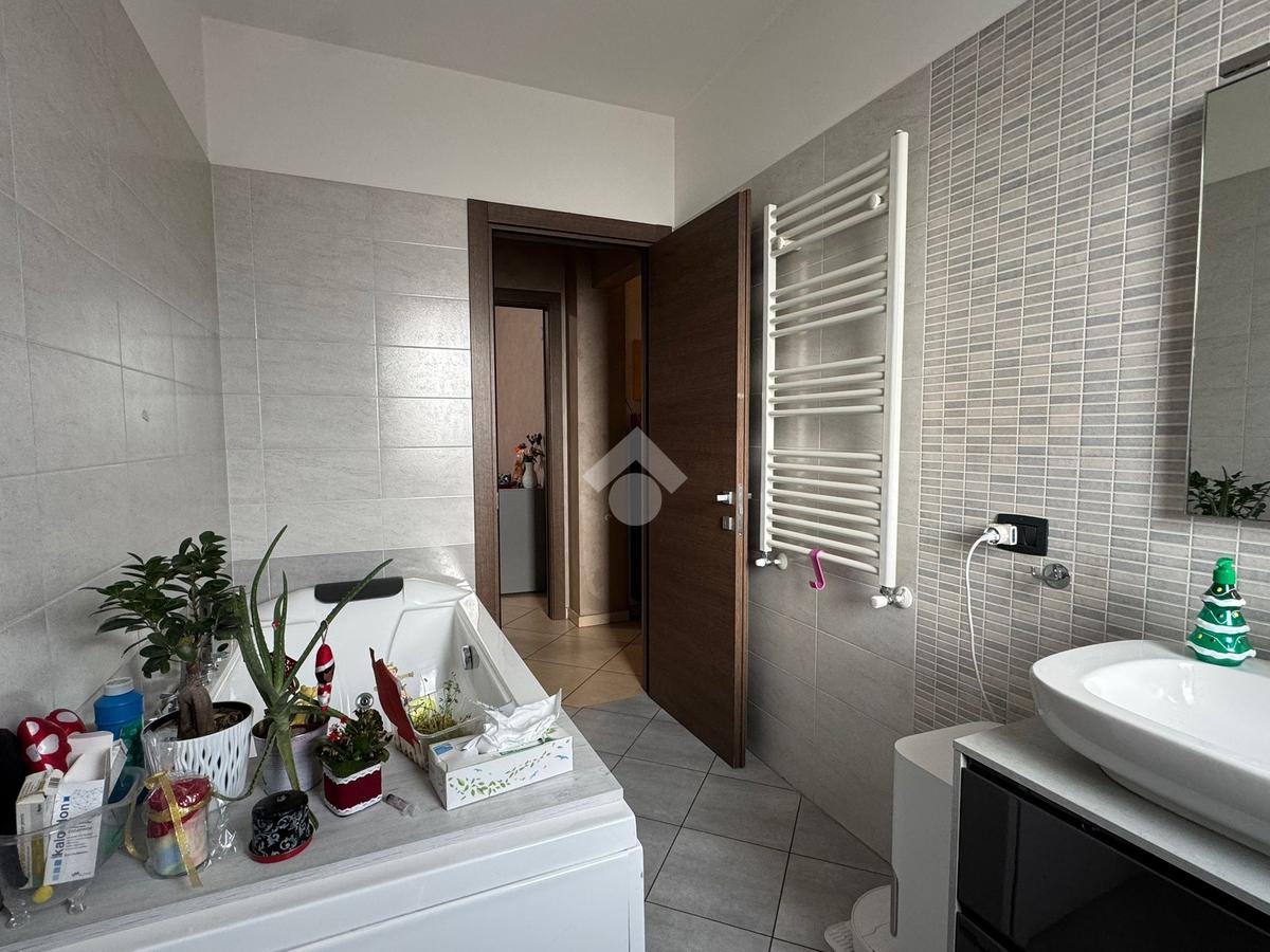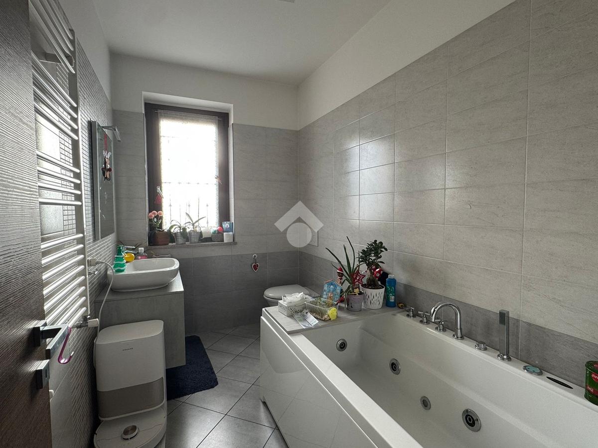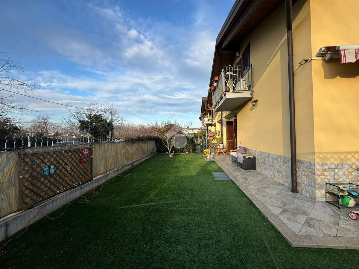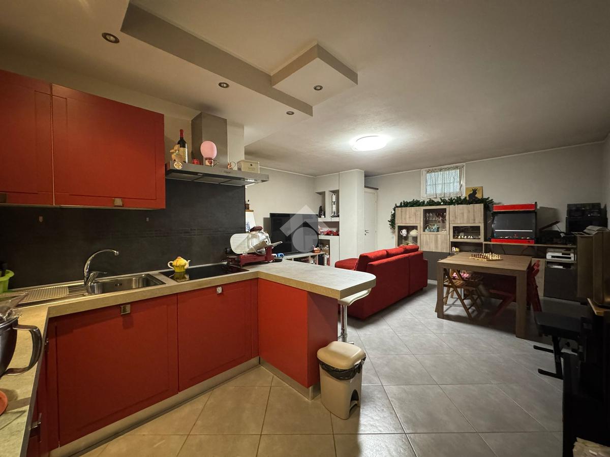 L’ingresso si apre su una luminosa zona giorno, separata dalla cucina abitabile da una pratica doppia porta a scrigno; dalla cucina si accede direttamente all’area esterna piastrellata. Il piano è completato da un bagno finestrato con vasca idromassaggio.