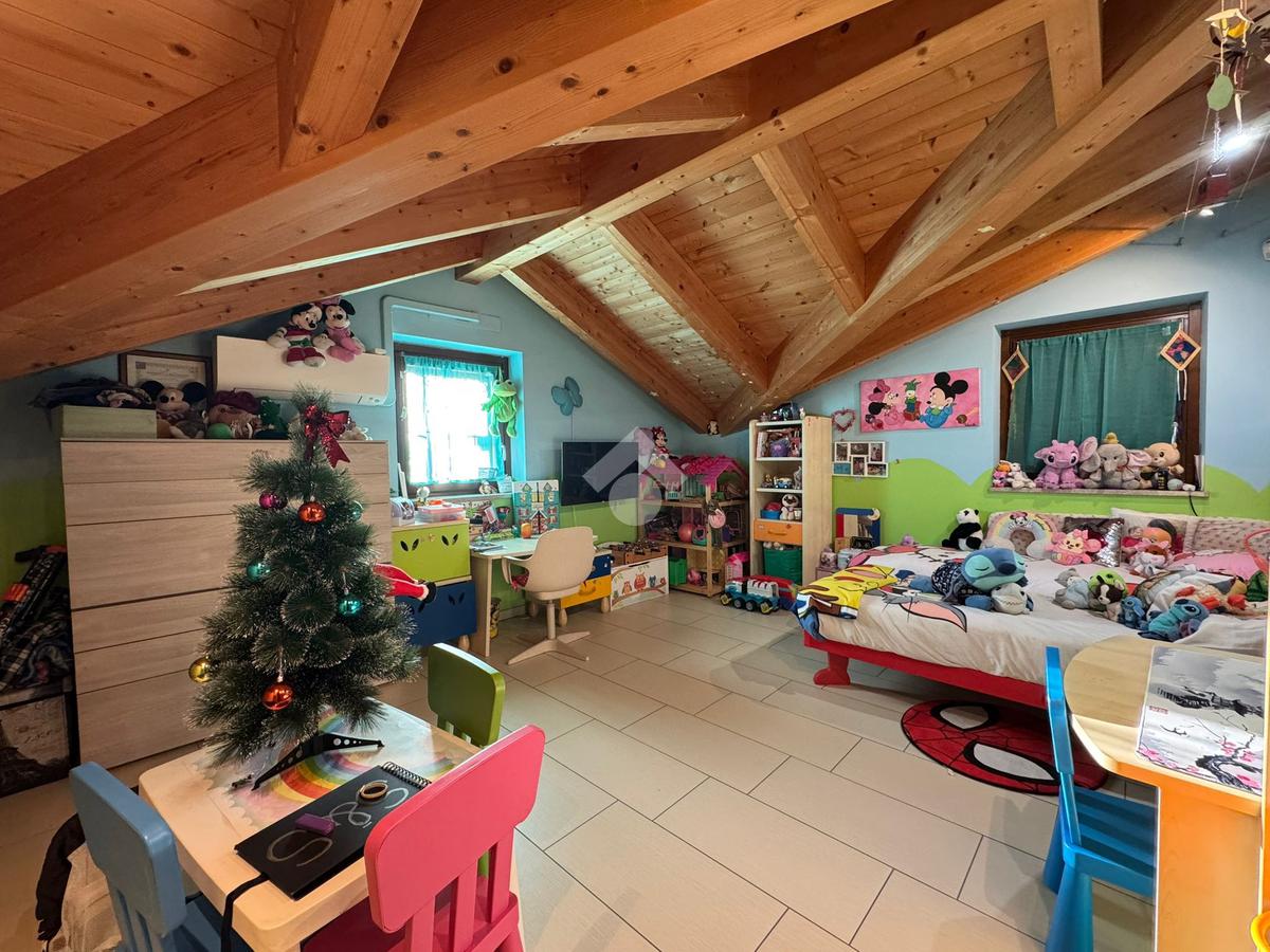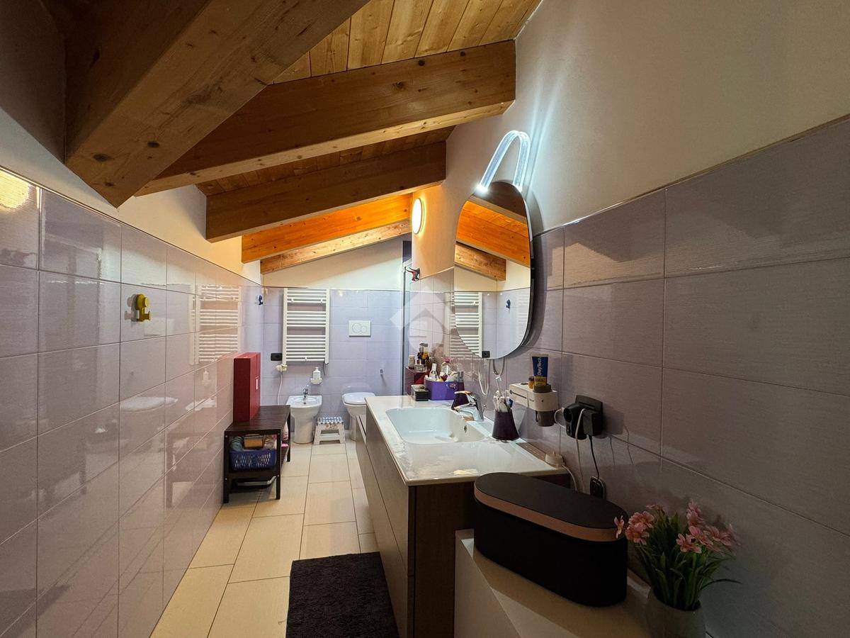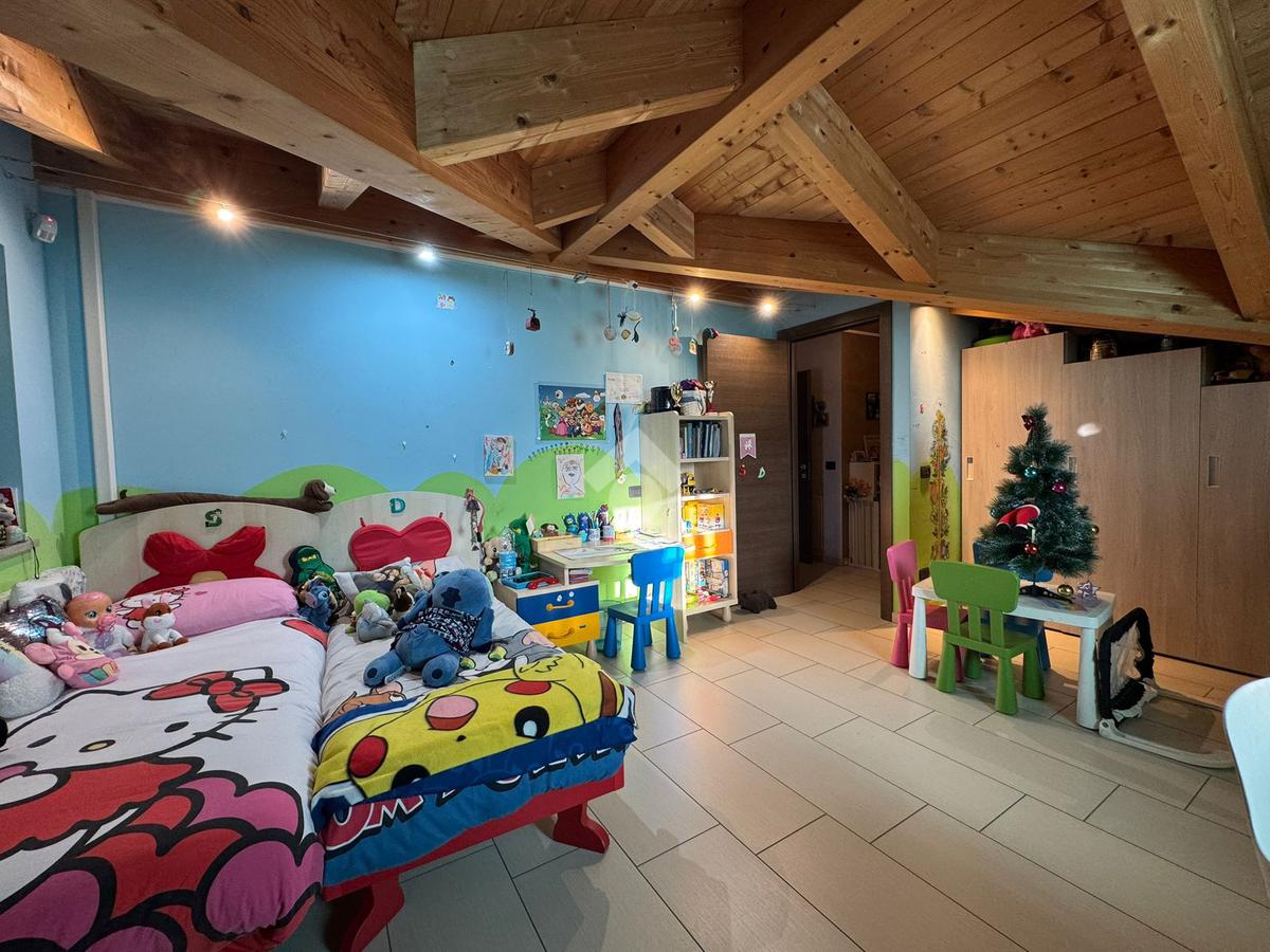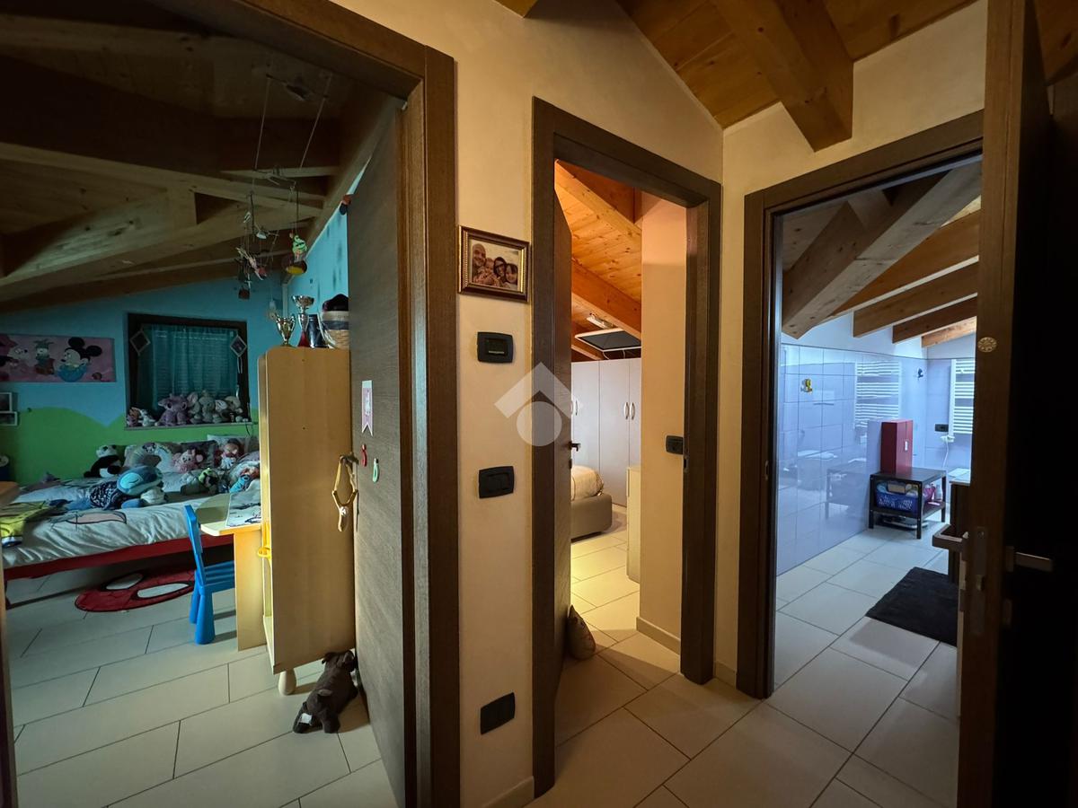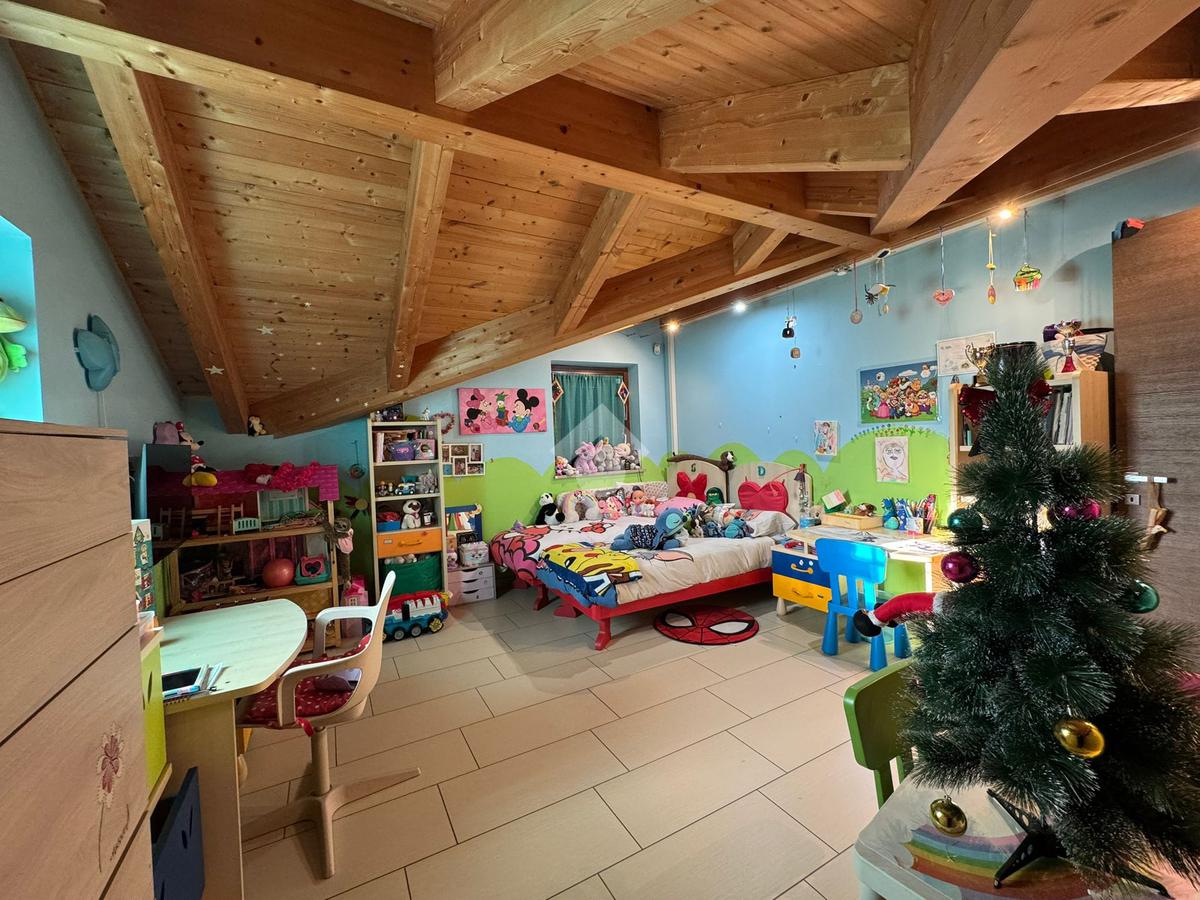 Una comoda scala interna conduce al piano mansardato, dove si trovano due camere da letto matrimoniali, di cui una con balcone, e un secondo bagno dotato di doccia.