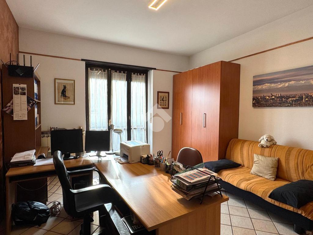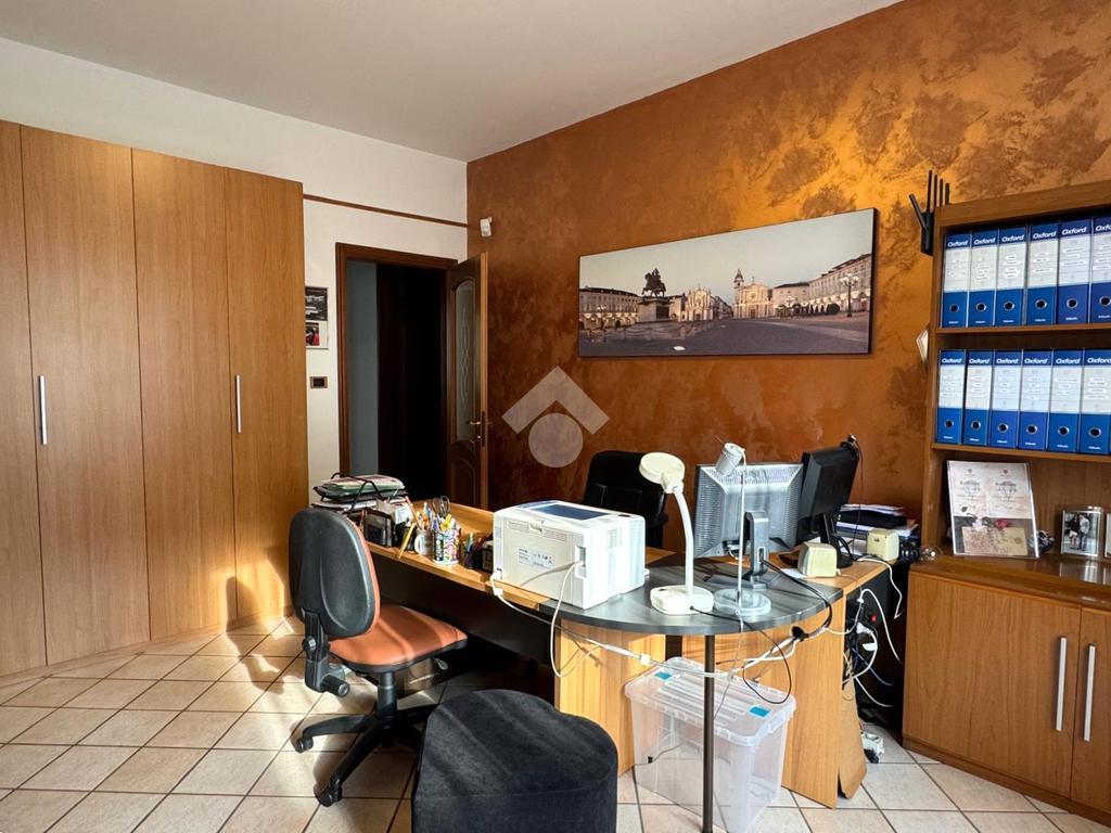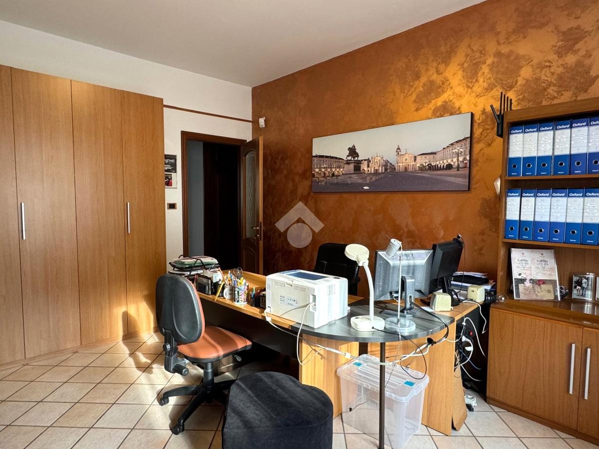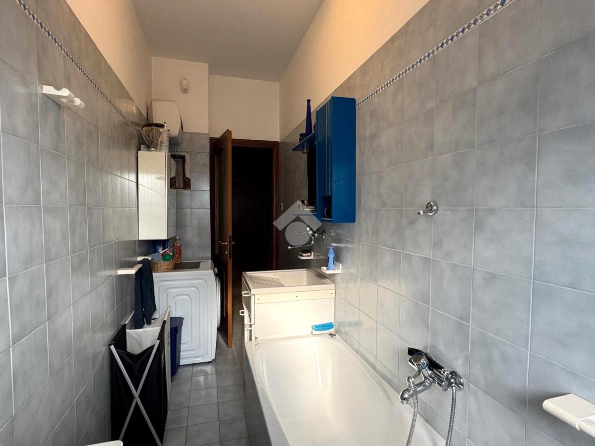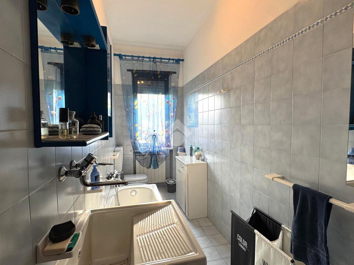Il disimpegno, completo di armadio a muro, conduce allo studio, al bagno principale finestrato con doccia, alla lavanderia e a una confortevole area relax.